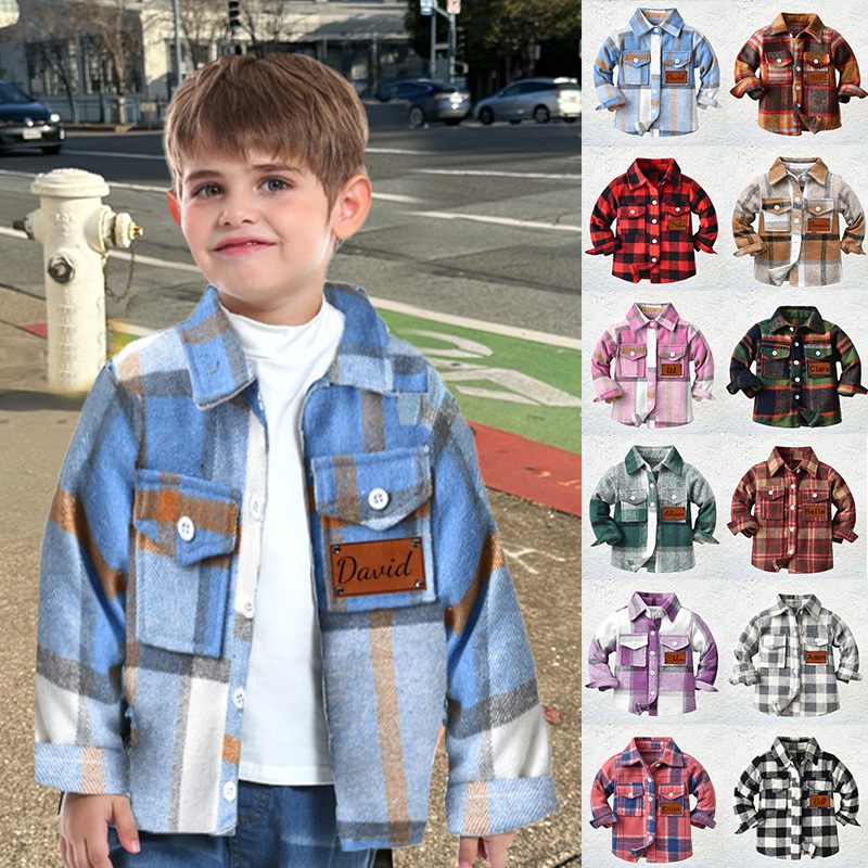 Personalized Leather Patch Kids Flannel Jacket(Buy 2 Free Shipping)